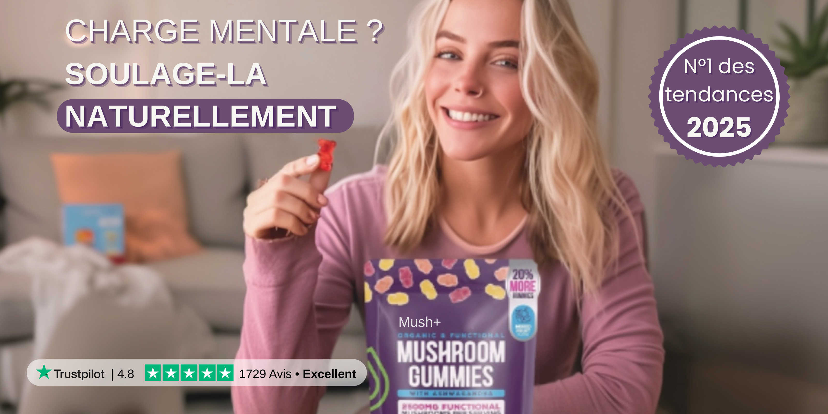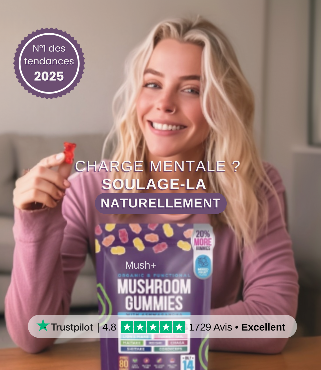 7 champignons puissants + ashwagandha de qualité premium, testés pour leur pureté. 9 femmes sur 10 retrouvent leur énergie et leur sérénité dès la première semaine.